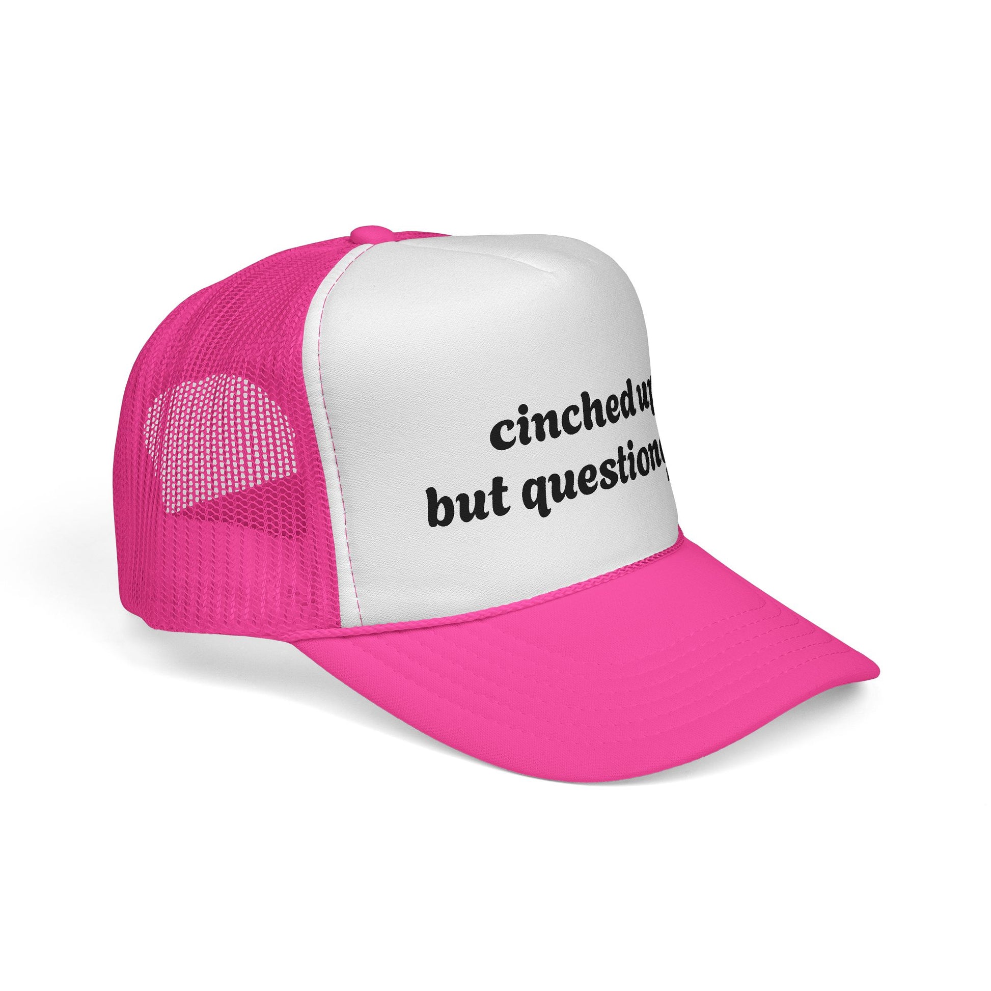 Cinched up but questionable Trucker Cap - Fun & Quirky Hats for cowboys , Outdoors, rodes Summer Style, nfr