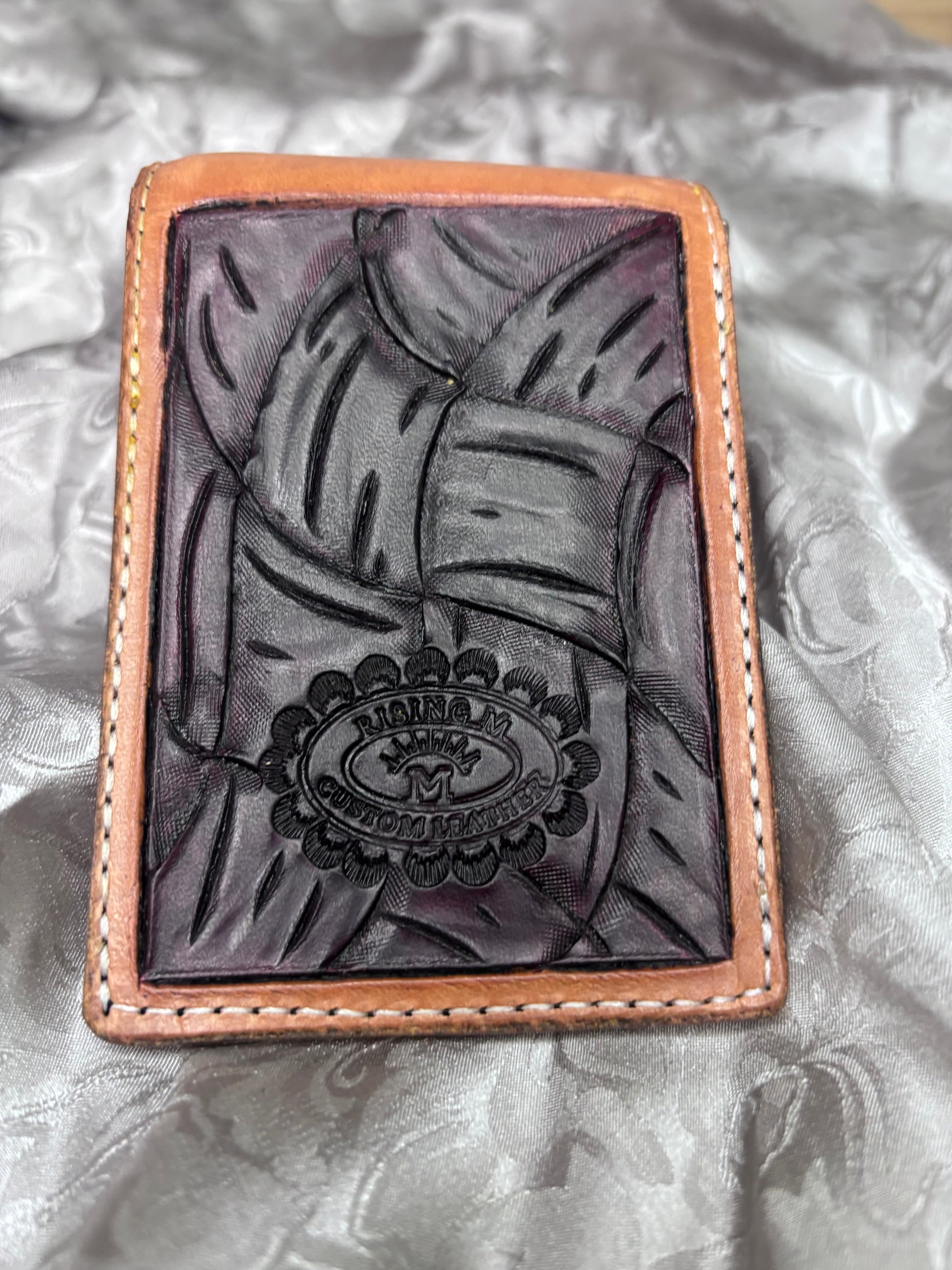 The interior features a sturdy money clip to keep cash secure and easy to access, making it perfect for everyday carry—whether you’re headed to town, the arena, or the road. Finished with detailed spurs tooling on the front, this piece carries a subtle nod to western tradition while maintaining a clean, refined look.