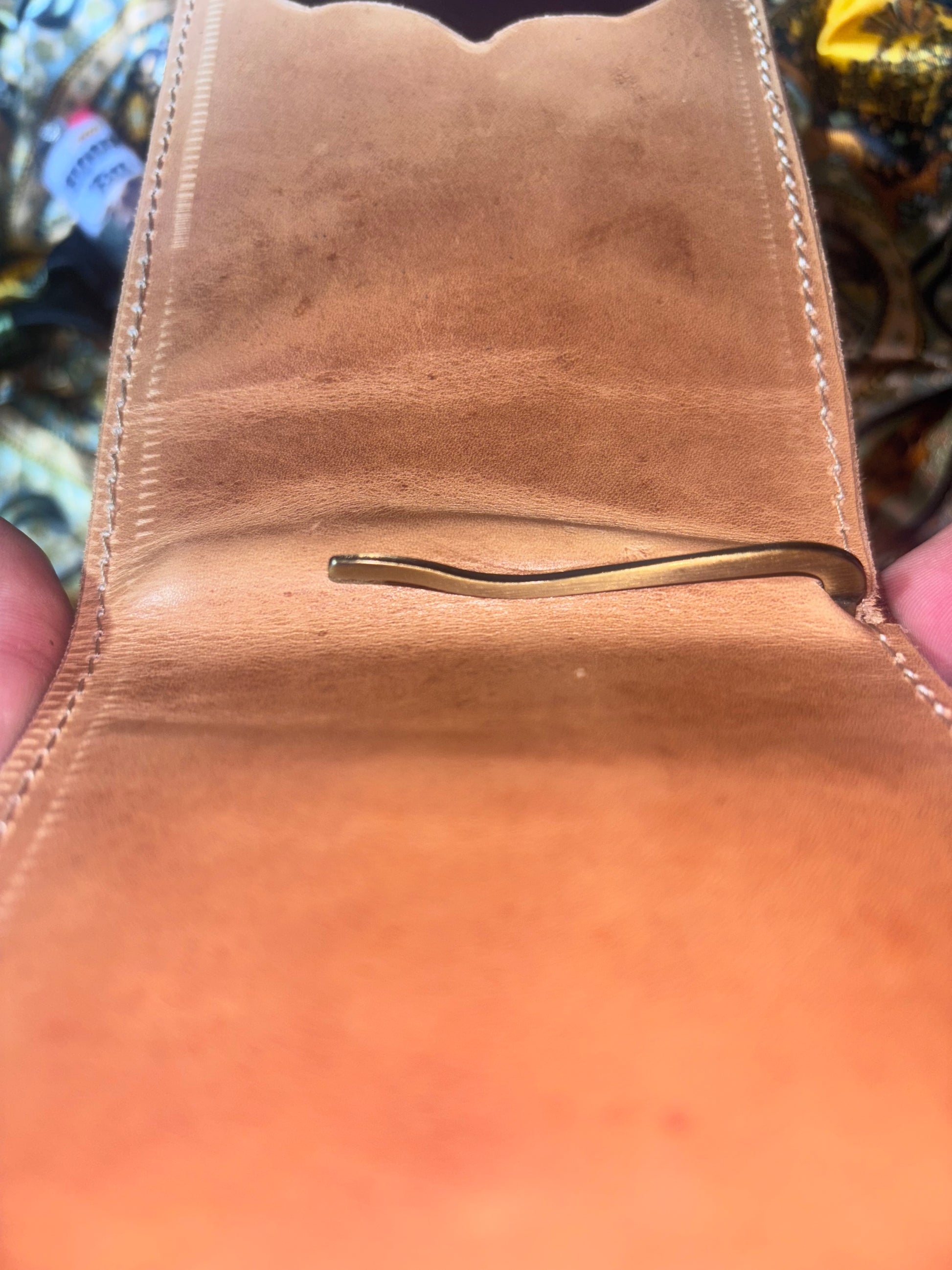 Two-Tone Oak Leaf Tooled Money Clip – Tan & Medium Brown