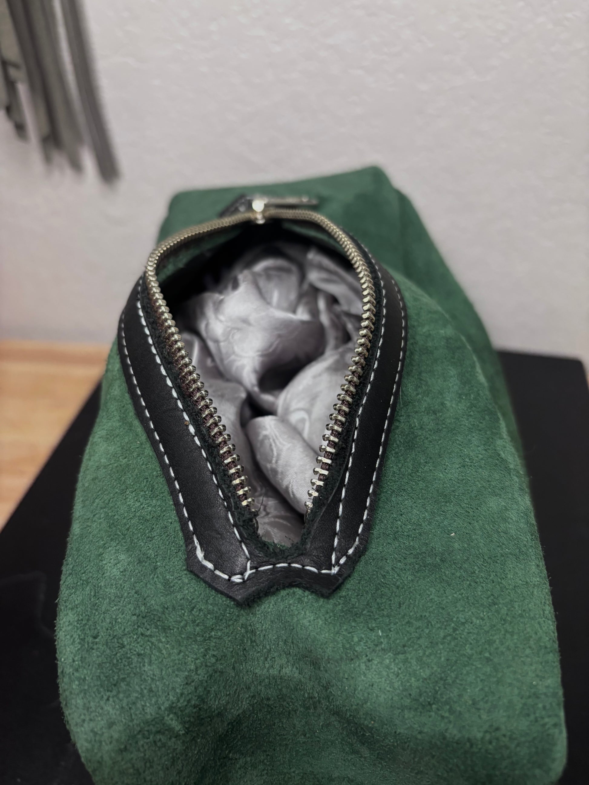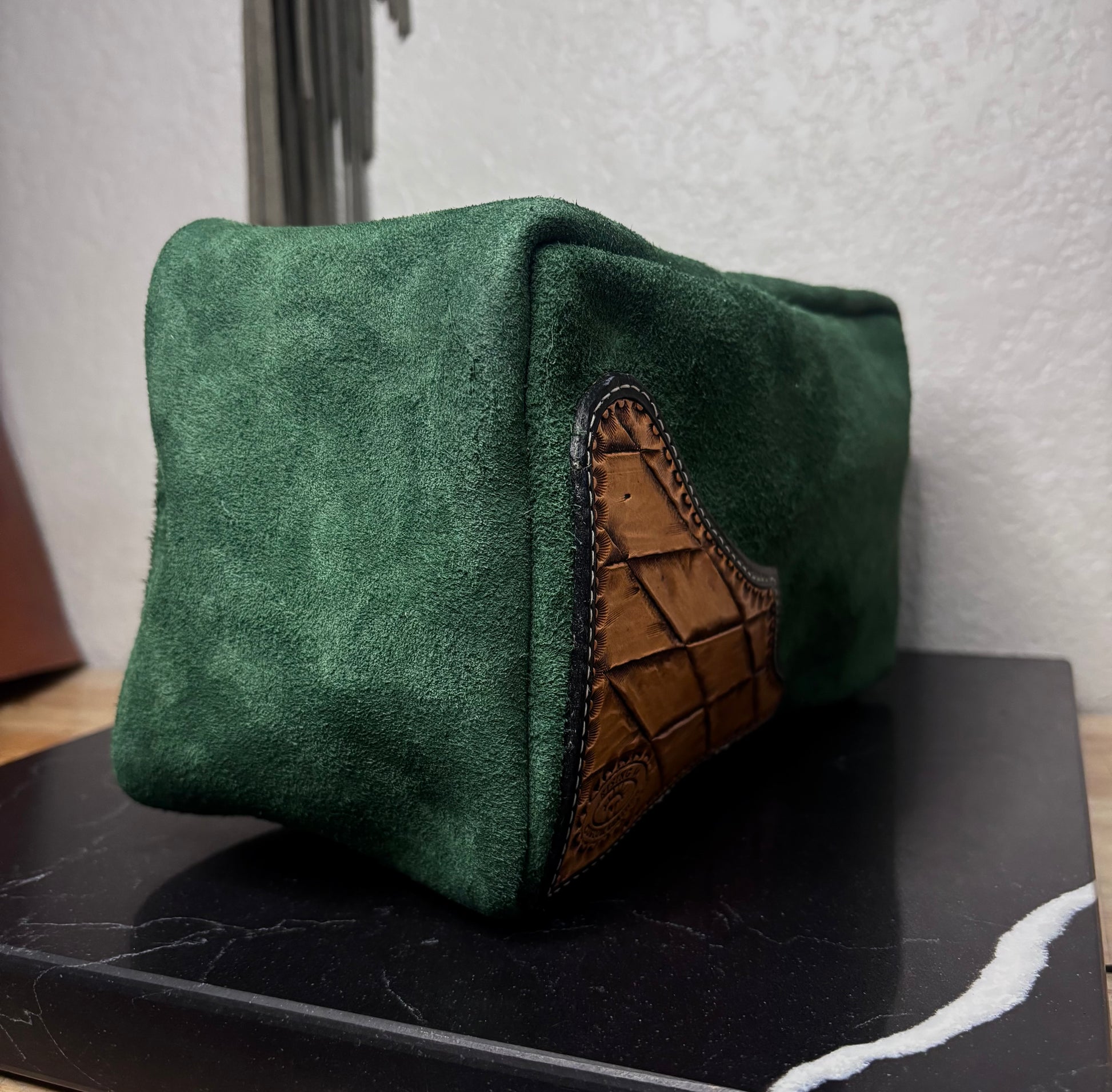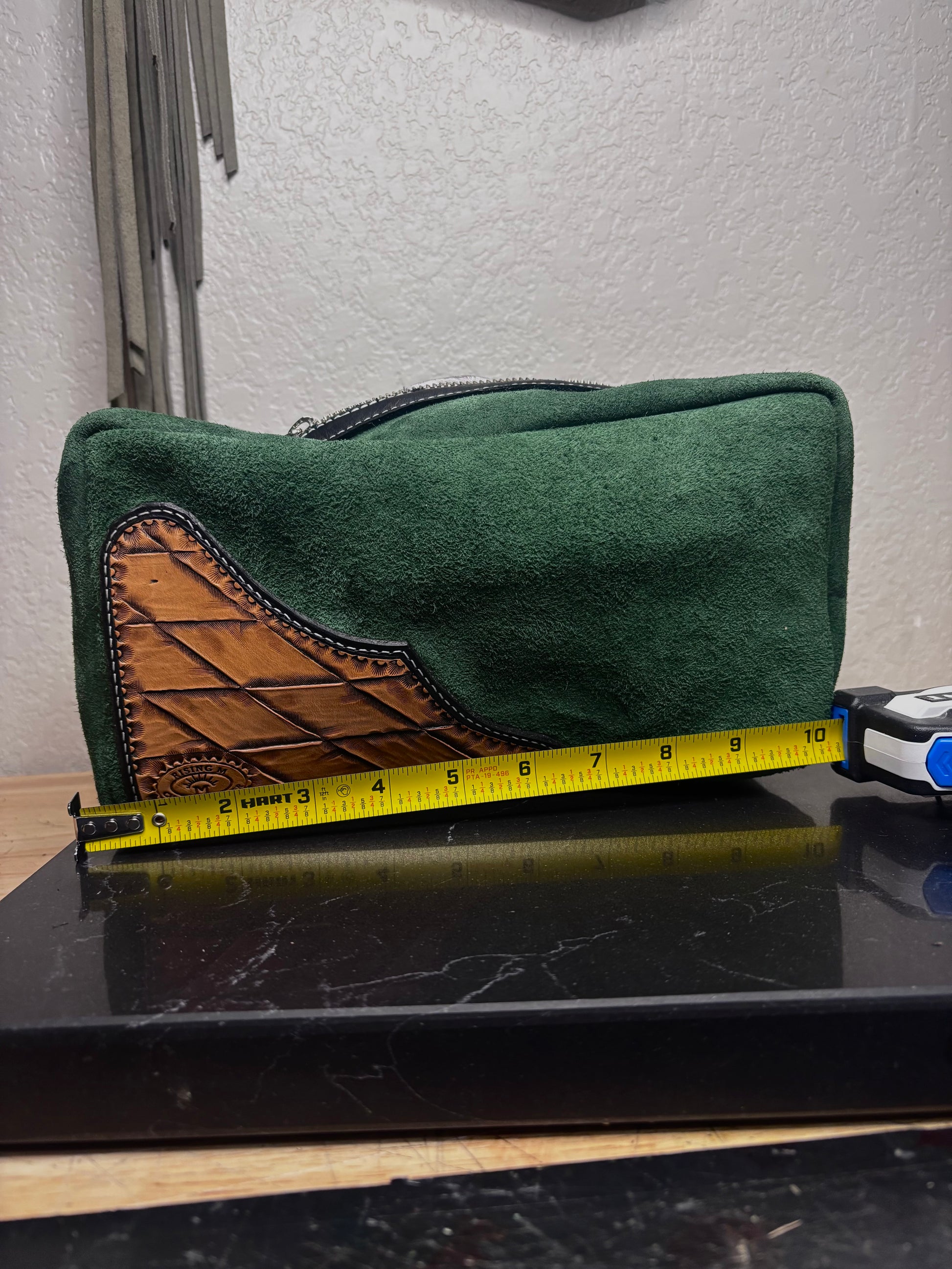 Tooled suede shave or makeup bag, perfect for on the go or daily use